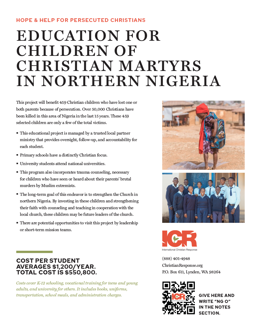 Help provide schooling, stability, and trauma care for children who lost one or both parents to anti-Christian violence.